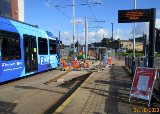 The summer rail replacement works on the Stagecoach Supertram network had been planned to be completed on Sunday 6th August with normal services resuming the following day. Unfortunately, with the continued wet weather this summer it became necessary to extend the period of the works for a further 48 hours with attention to the track at Shalesmoor taking place during this extension.