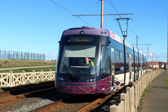 This photo shows 006 in service on 7th March 2023 as it works a service southbound to Starr Gate. This tram had spent a period out of use before this image was taken but was back in service on this day and remains so now. Its speeding past Anchorsholme Park. (Photograph by Michael Morton, 7th March 2023)