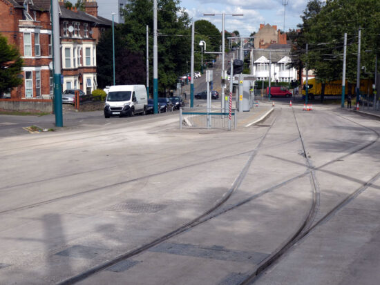 Then the day before tram services would resume, 31st August, and we see the completed trackwork. No workmen remain on site and if it wasn’t for the fact that there were a few cones and a complete lack of people and trams you would never know that there had been work going on! (Both Photographs by John Whittingham)