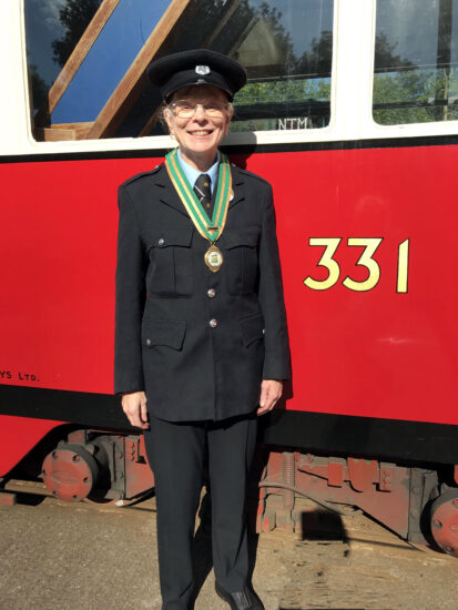 Each year the Tramway Museum Society – who own and operate the National Tramway Museum at Crich Tramway Village – appoint a President who officiates at special events and attend meetings which help to guide the direction of the Society. Recently the appointment for 2023/4 has been made with Sue Whiteley taking the role from outgoing President Bob Pennyfather.