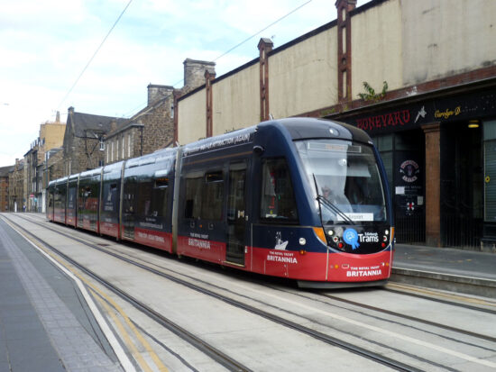 We do like our firsts on British Trams Online and we have another on Edinburgh Trams! Having only earlier this year seen the first vinyl wrap advert on a tram in the Scottish capital and then gradually seen more appear, 274 has now received its first full wrap but that’s not the first we’re talking about as it is advertising The Royal Yacht Britannia – the first time we’ve seen a second full wrap for the same sponsor on different trams.