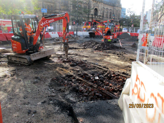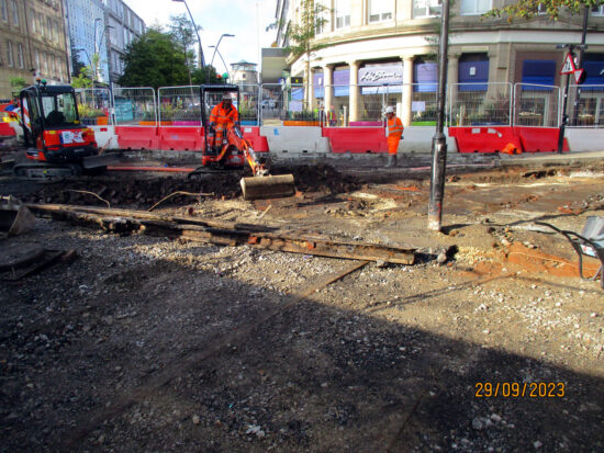 As roads are continually dug up around the country either for utility works or in the name of improvements we keep seeing the past being unveiled as more tracks from the first generation of tramways in the UK reappear after several decades. The latest city to give up some of its history – albeit briefly – is Sheffield where significant sections have been discovered during works on Fargate/Leopold Street.