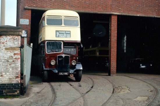 Of interest is that despite the fact that is has been 92 years since trams last called the building their own, there is still track in situ. Some of the track (at the entrance to the depot) was removed by volunteers from the East Anglia Transport Museum in the early 1970s but there does still remain some under the tarmac.