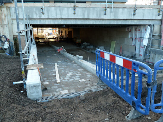 Although we aren’t expecting any real progress on trams returning to Blackpool North Railway Station on the Blackpool Tramway until at least next spring, there is still work ongoing around the new tram terminus. As well as the hotel, contractors are continuing to work on pedestrian access from the railway station and that’s where our latest photo from the scene comes from.