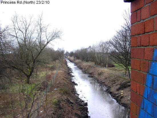 Its 23rd February 2010 as we first look down from Princess Road and you could be mistaken that we are actually looking down at a river! There has obviously been some wet weather recently before this photo with the trackbed being prepared for the eventual installation of the track. This view is looking north.