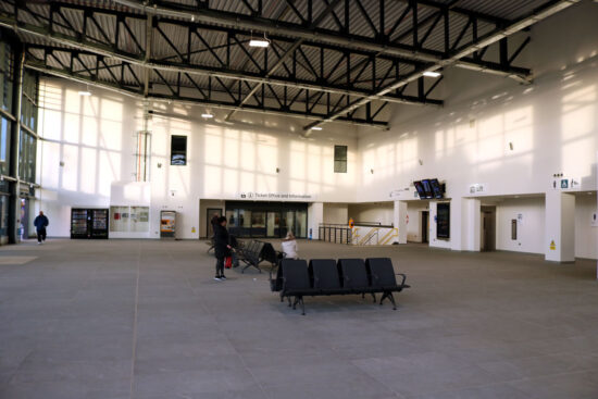The southern entrance of the station features a large glass wrap around design and includes a new ticket office and reception, public toilets, retail space and cafes, comfortable waiting areas. There is also a mezzanine level that has office space reserved for rail industry staff.