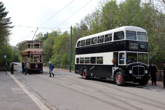 Taken during the Fares Please! event which took place in May 2023 and celebrated public transport this photo depicts one of the resident trams and a visiting bus at the Entrance stop. The tram probably needs very little introduction as it is Sunderland 16 which has been in service at Beamish most years since 2013.