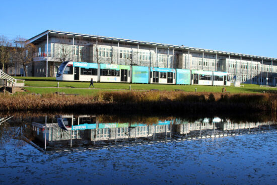 Last week’s British Trams Online Tram of the Year contest saw Edinburgh Trams voted in to win the two “modern tram” categories. As well as being named “Tramway (Modern) of the Year”, 258 also got the most votes in the “Tram (Modern) of the Year” having been the first tram to run on the Newhaven extension. This photo shows 258 working through Edinburgh Park on 11th November 2023 with it reflected in the lake. (Photograph by blackpool_trams)