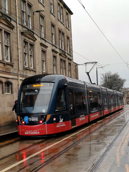 Today “Out and About” takes a look at a tram in action on the Edinburgh Trams Newhaven extension.