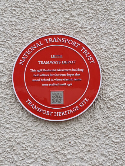 One of the most recent new “Red Wheels” has been placed on Leith Tramways Depot in Edinburgh. It has been put on the old office building which is still standing today and was built in 1938, situated in front of the now demolished tram depot which housed a fleet of trams until the original Edinburgh Trams system closed in 1956.