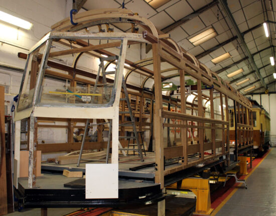 And with work on Bluebird starting to come to a conclusion, the workshop is now a hive of activity for the next major restoration project – Blackpool 298. This Brush Railcoach has recently seen its cab framework and windscreen at one end start to take place.