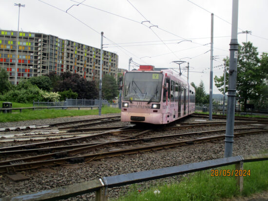 A special service is running between Halfway and Meadowhall (the Green route) whilst the Blue and Yellow routes are confined to operating the other side of the closure from University of Sheffield. As a result regular trams are running directly over the Park Square delta junction – both on the Green route as well as the Purple route and Tram Train service. Whilst this does happen regularly for early morning and late evening services this is still rare for most to see allowing many to get some more track in the book!