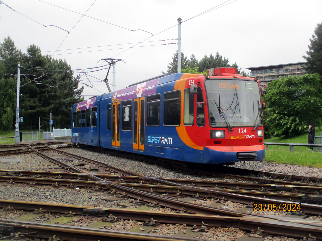 The Green route colour is demonstrated here on 124 as it heads over the delta towards Halfway. Next stop will be Sheffield Station.