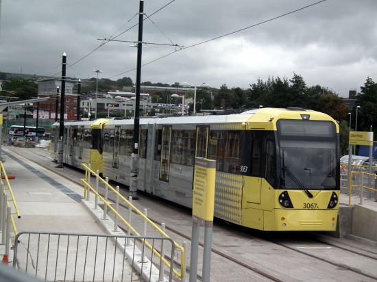 According to the Oldham Chronicle, trams are now “zipping” (?) through the town centre on daylight testing. I noticed at midday that the 2 trams were at the town centre Mumps stop with all external illumination lit.