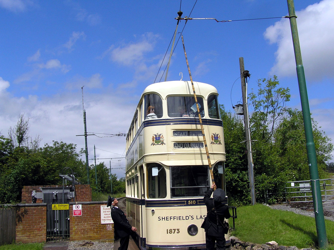 With work still required at Glory Mine to allow the full track layout to be used again, trolley fitted trams at Wakebridge have to change the wire the trolley is on before continuing up to Glory Mine. The crew of Sheffield 510 give us a demonstration.