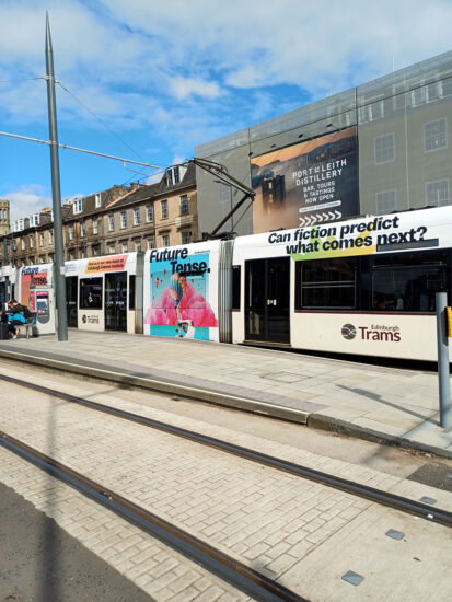 Although the Edinburgh Festival is no strange to advertising on the trams, this is in fact the first time that the Book Festival itself has an advert (previous ads have been for the Fringe Festival and International Festival).