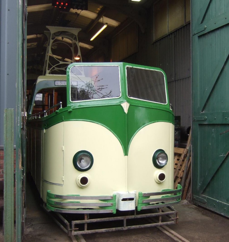 With the windscreens remaining intact for the time being at the request of the LTT, 233 looks very much as it did during the nineties when, as 605, it last carried 1930s style livery after being sponsored by the Fylde Tramway Society in 1990. The speed with which 233 has been commissioned for use is remarkable and it now seems highly likely that the tram will be complete ahead of its planned appearance at the Great North Steam Fair, held from 12th – 15th April. For our part, we are delighted to have been able to support this project by funding the repaint of 233, and we look forward to enjoying the fruits of our labours later this month when the rejuvinated Blackpool tram will carry its first passengers away from the seaside. Hopefully the weather will improve by then as today snow fell on the Museum – if it does then the tempting possibility of running four open cars in service together could become a reality!