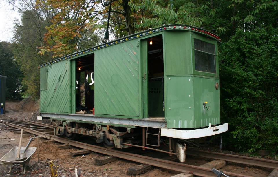 Blackpool 752, the Heaton Park Tramway’s dedicated works car, is back in action following some minor remedial attention, including the re-fitting of the large snowploughs at each end of the car on Tuesday 15th October. It will be recalled that 752 had spent two years in store at the East Lancashire Railway, but after being required to move recently, it has been decided to use the tram in connection with the current track laying work in progress at Lakeside Depot.