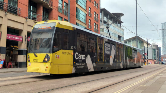 Manchester Metrolink 3075 has received its eighth advert following the application of new vinyls for Cano Water. The new advert was added to the tram in early August with it first being noted in use on 6th August 2024.