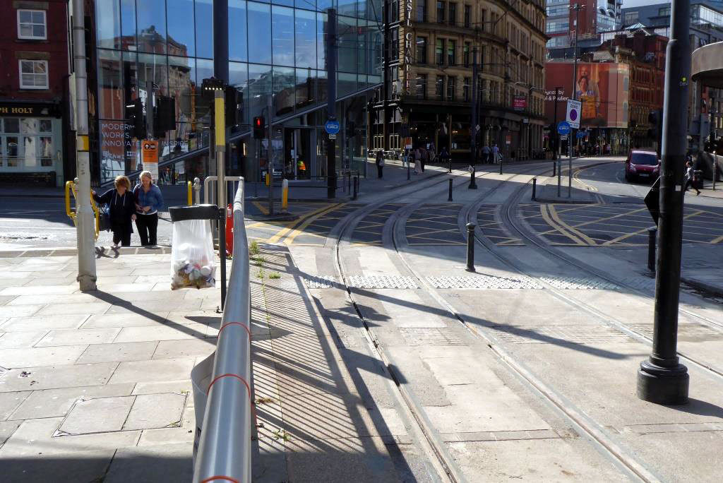 As we approach the final stages of the major Manchester Metrolink city centre closure to allow for rail replacement to take place on the original city crossing its time in this article to take another look at recent progress. Work has now been finished at Shudehill with attention turning towards Market Street and Piccadilly Gardens.