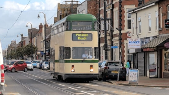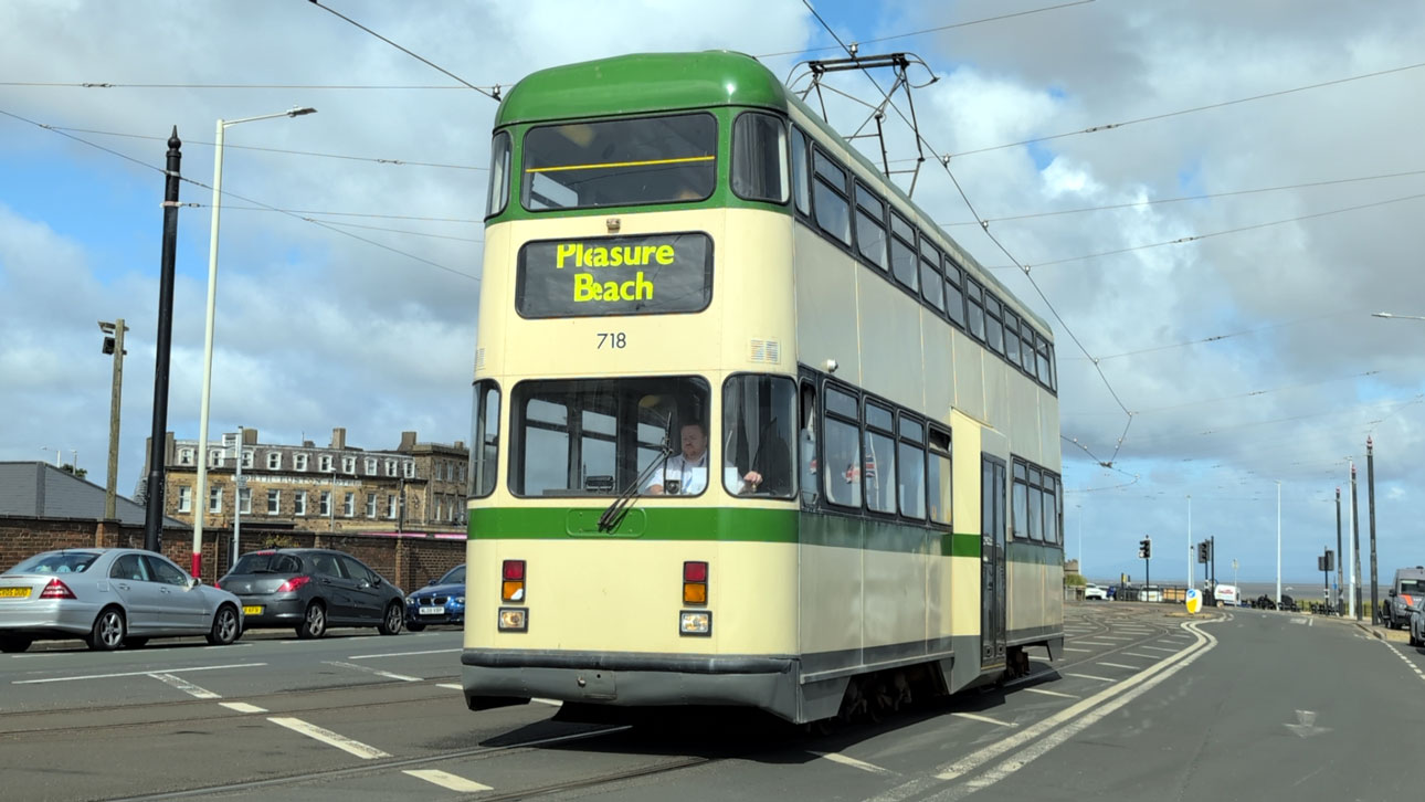 At Fleetwood – on the Esplanade – with 718 about to head back to Blackpool with a special running to Pleasure Beach.