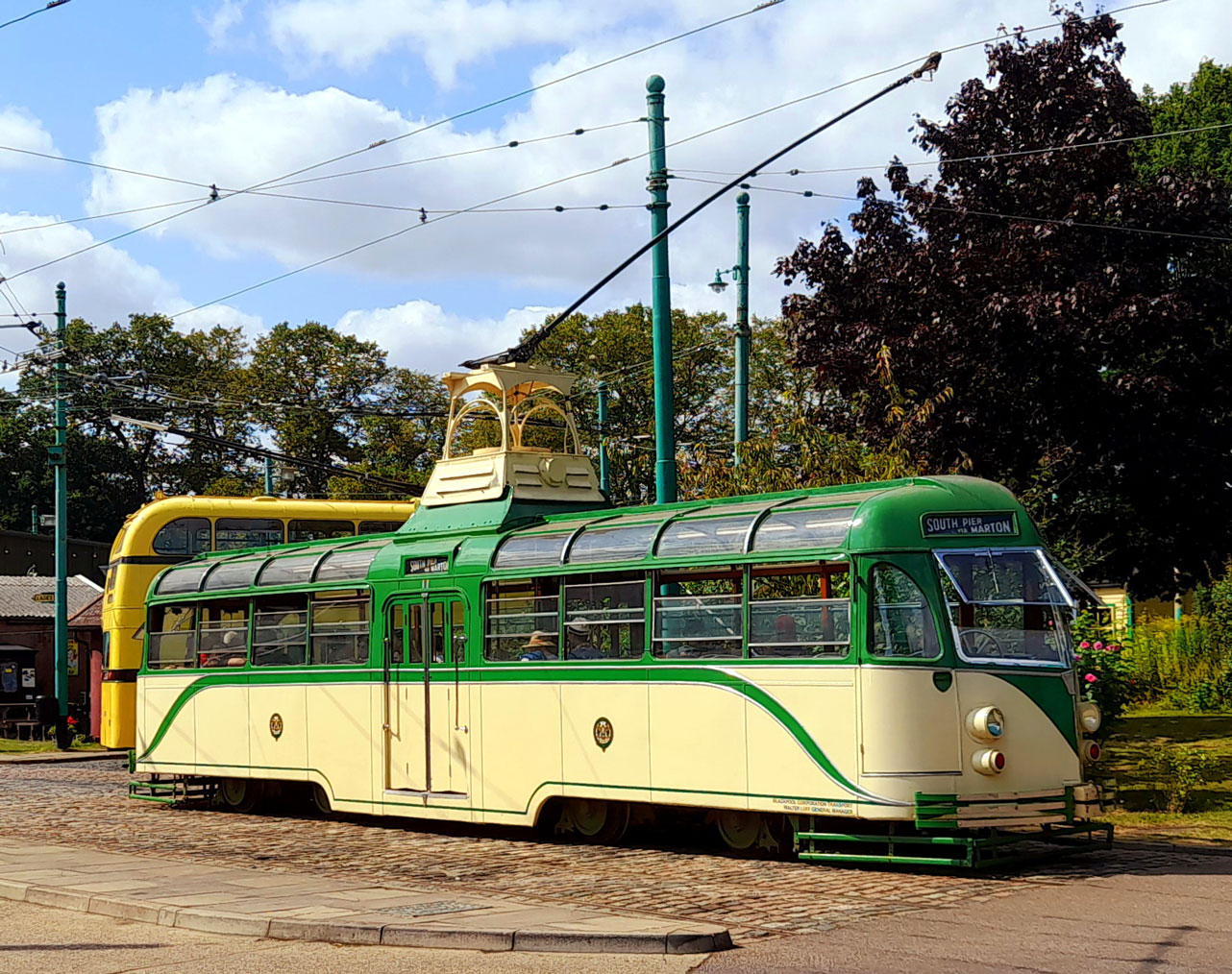 As is the norm, there was a two tram service in operation on this day and it once again had a Blackpool feel. The two trams were Marton VAMBAC 11 and Standard 159 and they were joined by Bournemouth trolleybus 286. The main tram depot was closed off to visitors but at the front were three further trams: Blackpool Brush 634, Sheffield 513 and London Transport 1858.