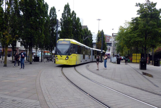 As we recently saw in another article, there are improvement works taking place in Manchester City Centre which had led to service alterations on the Metrolink network. This time most of the destinations being served and displayed on the front of trams are not that unusual (with possibly the exception of Crumpsall) but how they’re getting there and from where is a bit different! Steve Hyde shows us the unusual destinations in this pictorial article.