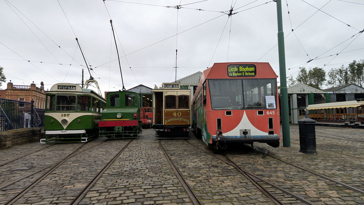 Back to the depot fan and there were more line-ups for all to enjoy. The Traverser was home to Blackpool & Fleetwood Rack 2 for most of the day (the first electric tram to run in passenger service at the museum) whilst in front of the depot Blackpool & Fleetwood 40 again came out and was joined by Blackpool Pantograph 167 and then Blackpool Centenary 645. There remain plans for 645 to be converted into a new Access Tram with ambitious plans to get it ready for use by this time next year.
