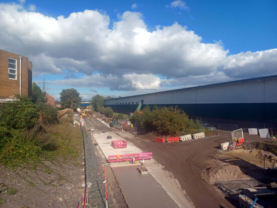 If you believe the literature from the Midland Metro Alliance this time next year we may be on the final run-up to services starting on the West Midlands Metro extension from Wednesbury to Dudley. But that still looks some way off although, as we see in this latest update, there has been some more progress in construction as we head to Great Bridge and New Road Bridge courtesy of Chris Allsop-Buckler.