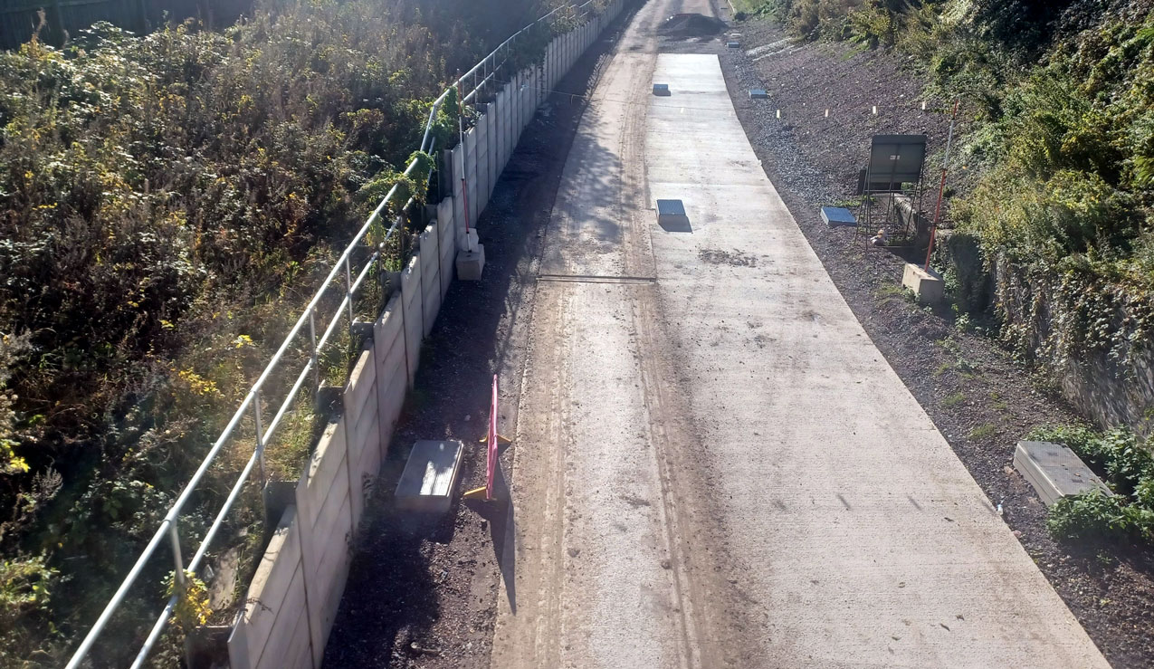 Also at Great Bridge and the concrete base is being laid here in preparation for the installation of the track.