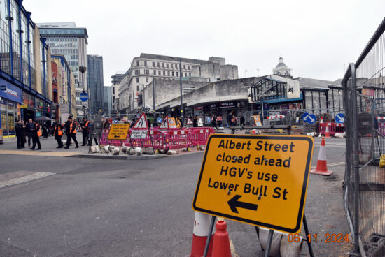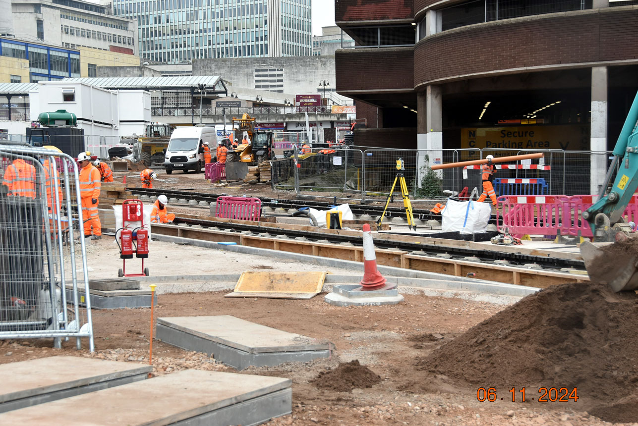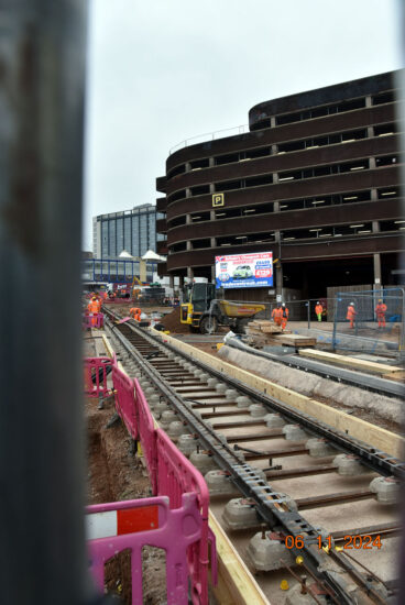 We emerge onto Moor Street Queensway where the tracks are already in situ.