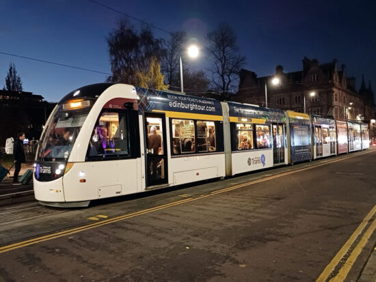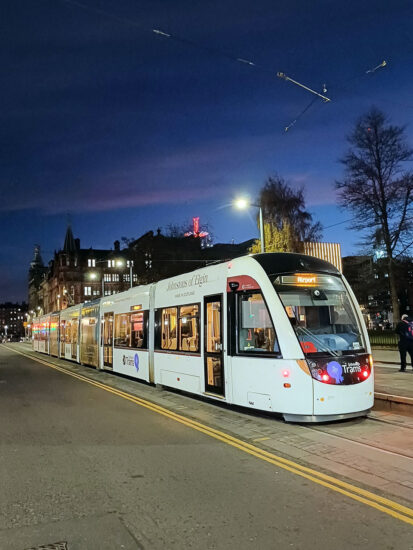 Photos in this article come from Edinburgh Trams and show a few of the trams in service around St Andrew Square on a clear 14th November 2024 – both during the day and then during the evening rush hour. Roy Calderwood provides the images.