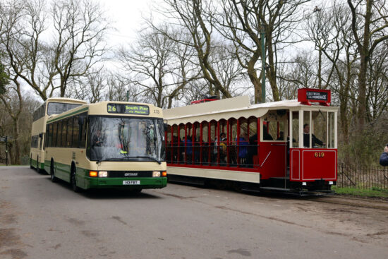 As part of the official launch back into service for Blackpool Replica Vanguard 619 at the Heaton Park Tramway on 26th March 2023 the Blackpool theme was continued by a couple of visiting buses (with Blackpool trams operating the service exclusively as well).