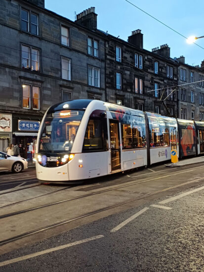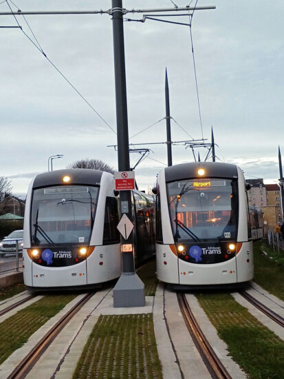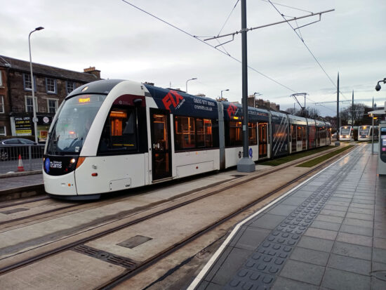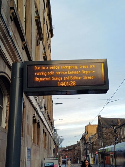 During the afternoon of Saturday 14th December, Edinburgh Trams were forced to operate a split service after a medical emergency between Haymarket and West End. This led to an unusual split service running – from Newhaven to Balfour Street and from Airport to Haymarket Yards (usually we see trams running Newhaven-Picardy Place and Airport-West End but that wasn’t possible on this occasion).