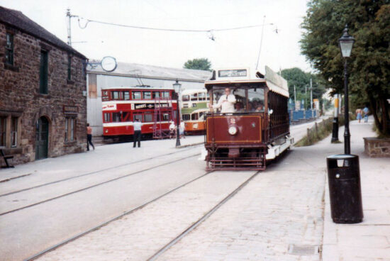 It may be further back in time than the last couple of images but it’s the same location as we are at what is now known as the Crich Tramway Village. The scene surrounding Blackpool & Fleetwood 2 is both familiar and different although you can easily work out just where you are at the museum. 2 is just about to pass where The Red Lion is now located on the right hand side.