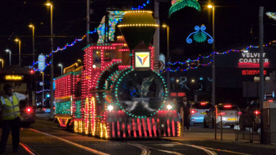 Although it was the second night of the illumination season this was the first Illumination Tours with them not able to operate on the switch-on night because of events on the Tower Headland. This photo depicts the popular Western Train as it approaches Pleasure Beach for another tour.