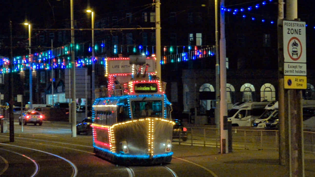 The second operational Illuminated feature car was the Frigate, HMS Blackpool. The tram is seen here as it comes round Gynn Square with a southbound tour.