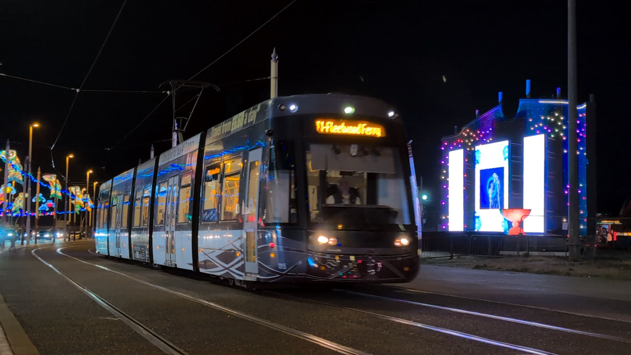 It wasn’t just about the heritage trams on this night, Flexity2 trams were also operating the core service and here is 015 which is working a service to Fleetwood Ferry at Pleasure Beach. This would run direct to the northern extremity of the tramway with no trams operating via North Station at this time during the main illuminations season. (All Photographs by Steven Hughes, 31st August 2024)