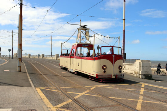 Then on 27th May 2024 and we find the tram in service again on another sunny day on the Fylde Coast. By now its working for Heritage Tram Tours and this was a hop-on, hop-off timetable day (as was the complete Bank Holiday weekend) with it going to Bispham on this journey. Its now been re-numbered 227 and carries this red and cream livery, which it didn’t carry in its normal life but does provide a bit of a what if? Its again seen at Gynn Square in this photo, albeit heading in the opposite direction. (Both Photographs by Gareth Prior)