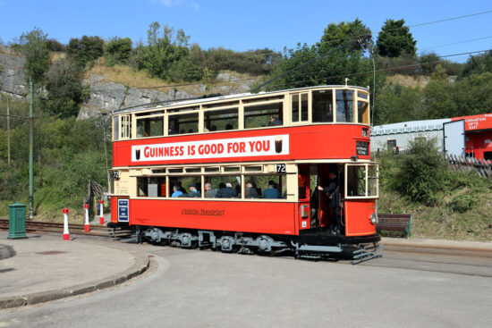 Its now 13th September 2024 and 1622 remains in service at Crich (although hasn’t been for all of those intervening years) as we again see it heading north, this time a bit further up the line by Victoria Park. The one big change for the tram is that is now has external adverts with this side telling us that Guinness is good for you. (Both Photographs by Gareth Prior)