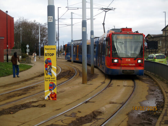 South Yorkshire Supertram have become the latest UK tram network to partner with the LRSSB for the new “TWO Lines = STOP!” safety campaign. This campaign is designed to remind the public to stay alert at double-line crossings, where trams operate in both directions.