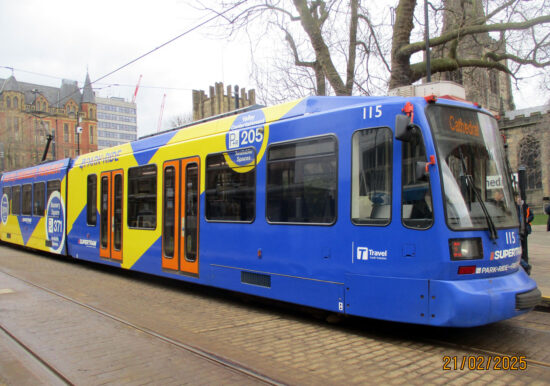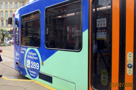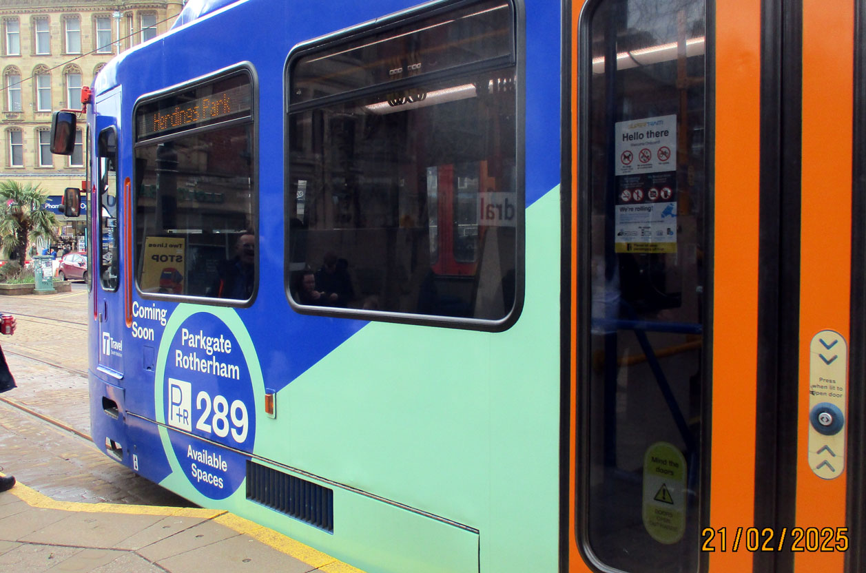 The Park and Ride advert is the first time that one of the tram has featured the new South Yorkshire Supertram branding externally since the change of ownership in March 2024 and is also the second time that a tram has been used to promote the Park and Ride sites which can be used by travellers on the tram system (116 having carried vinyls for this since April 2023).