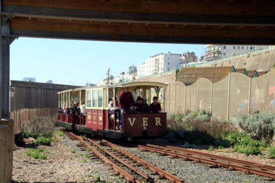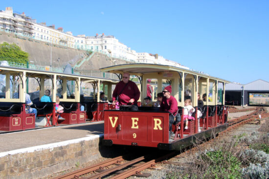 The first ever electric railway in the UK, the VER now operates every year between the start of April and end of September running between the Aquarium (by Brighton’s Palace Pier) and Black Rock with one intermediate station at Halfway. It runs every day – subject to weather conditions – using a fleet of original trains built specifically for the line, ranging from 1892 built no. 4 to 10 of 1910.