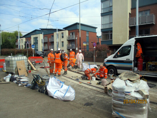This was only a three day closure (during which time no trams ran any further than Shalesmoor towards either Malin Bridge or Middlewood) over the start of the Easter Bank Holiday weekend, with normal services resumed from the start of service on Monday 21st April 2025.