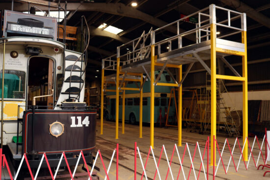 This has included the installation of new gantries to allow work to easily be undertaken on the roofs of the trams in the depot. Work will now be able to take place safely on inspecting the trolley poles, trolley base, roof equipment and other elements of the roofs and top decks of the tram fleet.