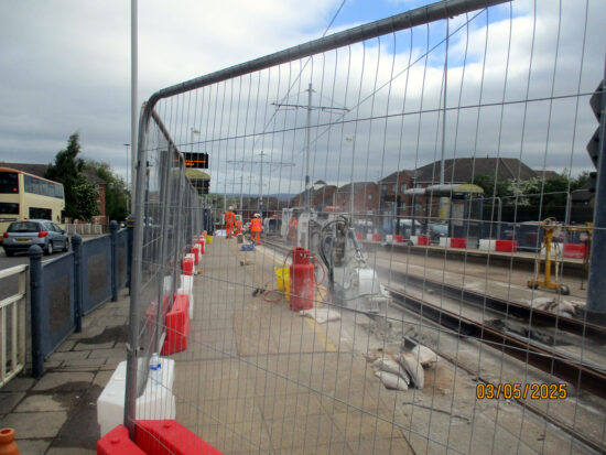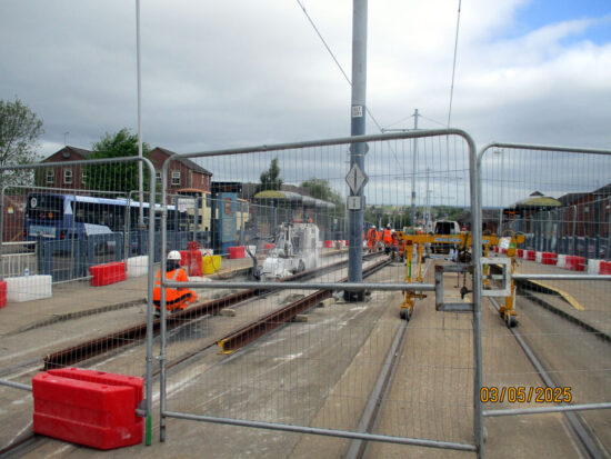 The May Day Bank Holiday weekend has seen the latest trackworks on the South Yorkshire Supertram network as the investment from the South Yorkshire Mayoral Combined Authority to improve the system continues. This time they are attending to the track at Gleadless Townend which has affected services on both the Blue and Purple routes. This article includes some photos from the first day of the works courtesy of Stuart Cooke.