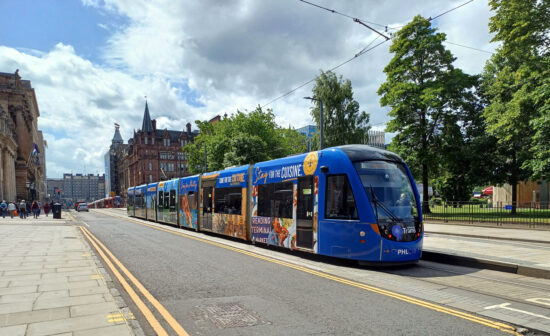 16 of the 27 strong class of CAF trams now have full vinyl wraps meaning that the traditional fleet livery is being seen less and less.