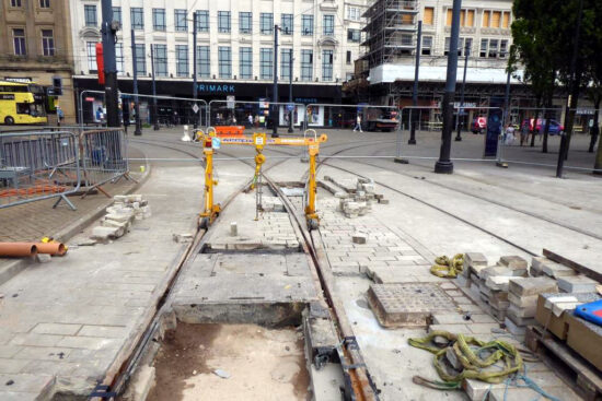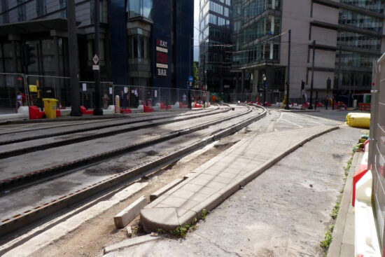 As the major two month closure of the Manchester Metrolink line between Piccadilly Gardens and Piccadilly Station enters its final couple of weeks we take another look at recent progress on the track replacement with images coming from Steve Hyde and taken on 28th July 2025.