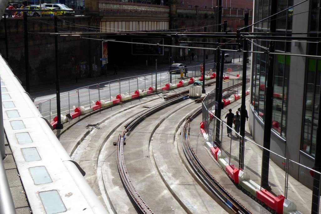 The current stage is concentrated on the curves at Piccadilly Place, here we see work at Auburn Street/Aytoun Street junction.