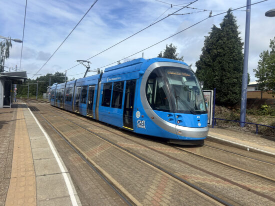 West Midlands Metro Urbos3 37 had been named Ozzy Osbourne on 26th May 2016 with the man himself undertaking the naming. Despite the fact that it has gone from magenta to blue and been out of service for extended periods of time it has retained the name but following the passing of Ozzy Osbourne with it being unavailable for service two Urbos100s received the name – 49 and 57.